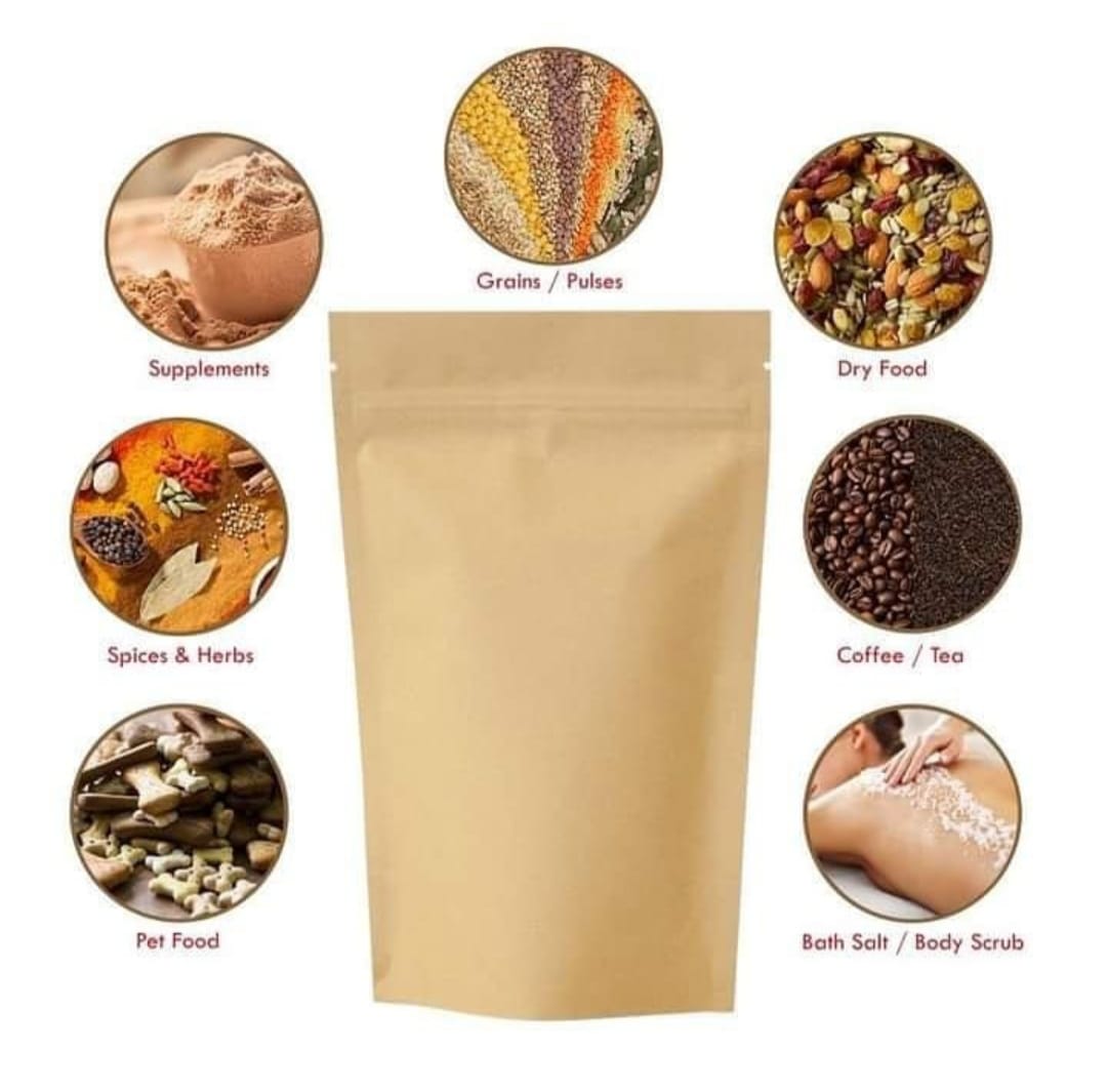 Eco-friendly, durable, and stylish – our Brown Craft Standup Pouch is the perfect packaging solution for a modern, natural look.