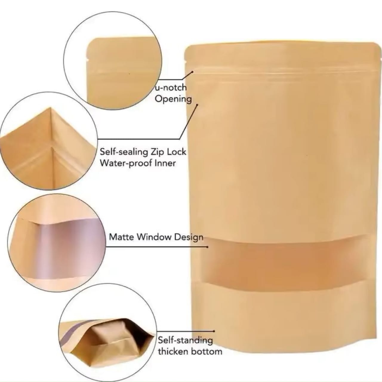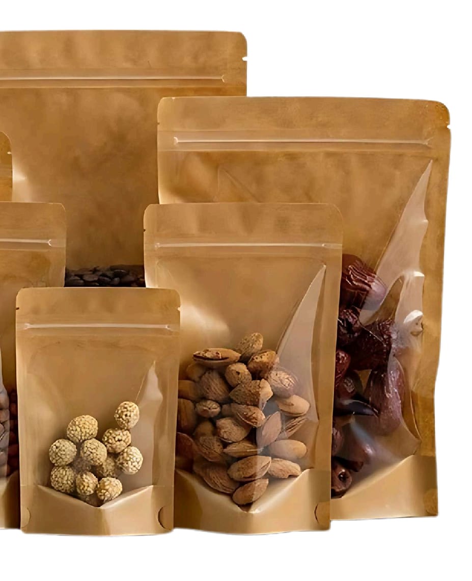 Upgrade your packaging game with a Brown Craft Stand Up Zipper Pouch – One Side Clear Bag that protects your product and highlights your brand.